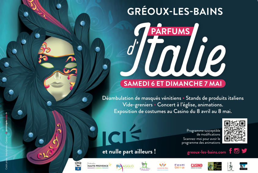 Parfum d’Italie est l’un des évènements incontournables à Gréoux-les-Bains. Le samedi 6 et le dimanche 7, Gréoux accueille les Masqués Vénitiens de France pour deux jours inoubliables. Nous vous dévoilons le programme de ces deux jours à ne pas manquer...
