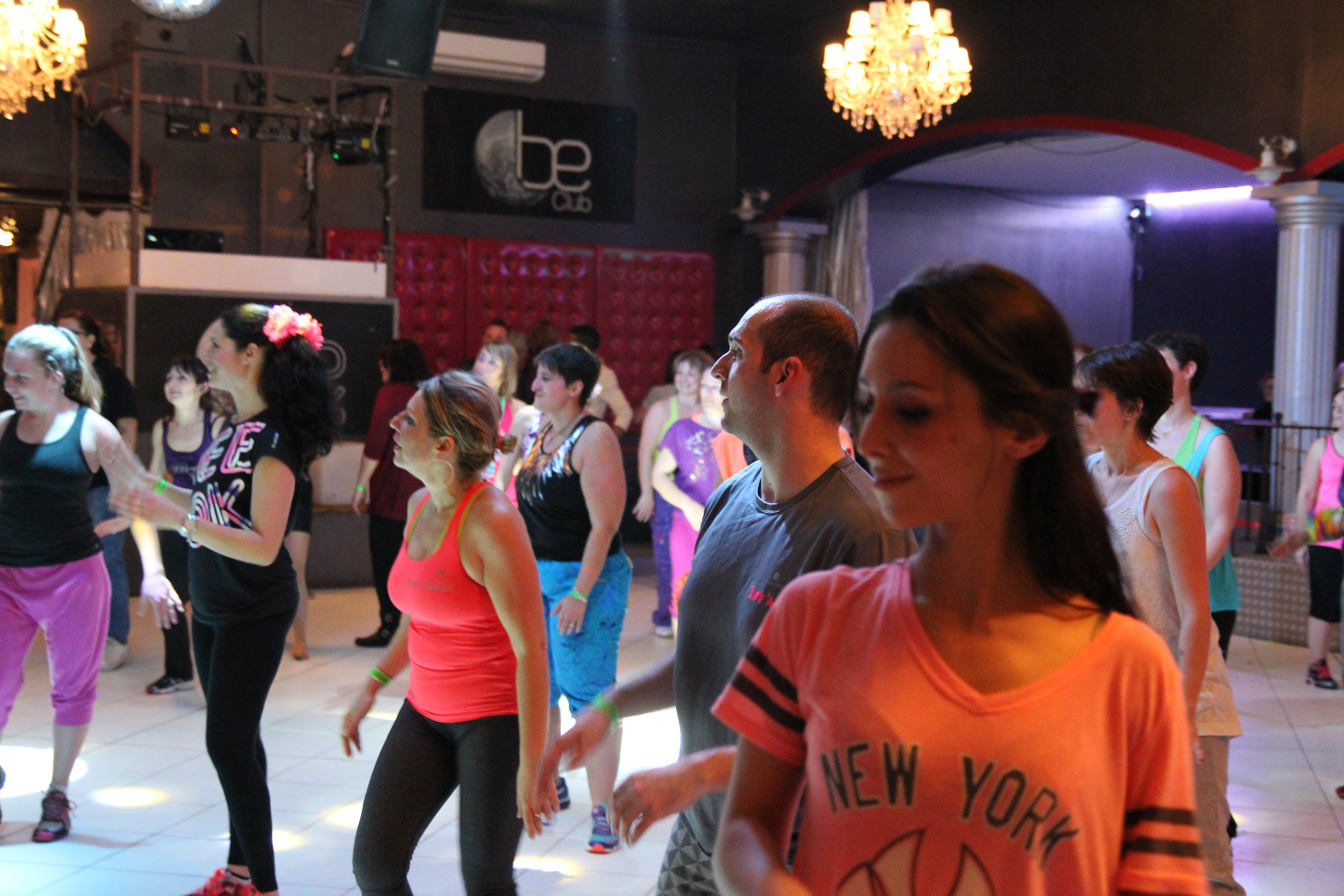 À 19h30, les Zumberos ont pris par aux rythmes endiablés des professeurs JYEM, Sophie, Ivana, Delphine et Lydie pour une Zumba party exceptionnelle de quasiment 2h. Plus de 50 personnes se sont défoulées sur les sonorités et chorégraphies créées pour l'occasion. La bonne humeur se lisait sur tous les visages et nous préparait à une belle soirée à venir.