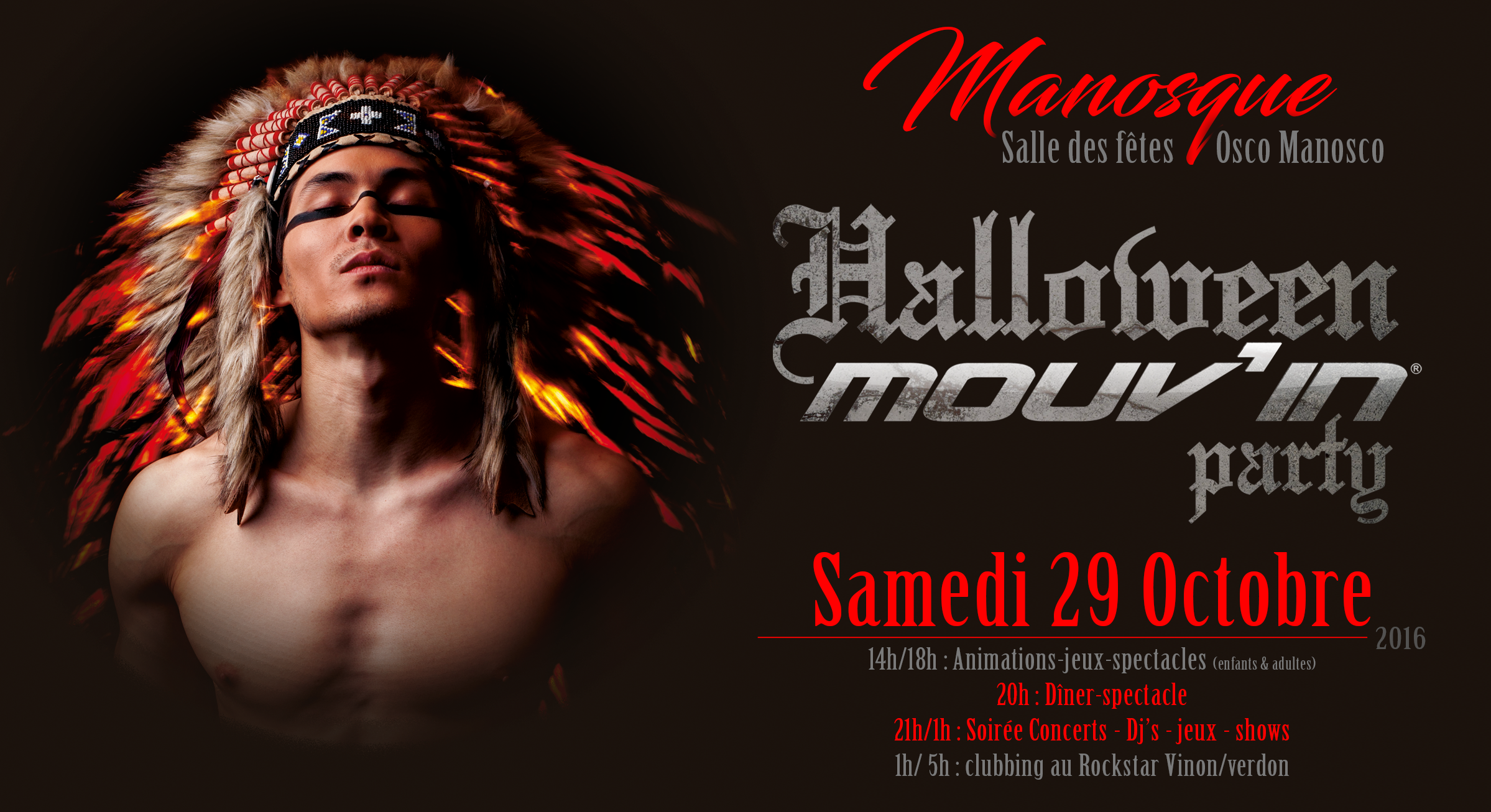 Dîner spectacle (adulte) + soirée HALLOWEEN MOUV'IN PARTY le 29 octobre 2016 à 20H à MANOSQUE à la salle des fêtes